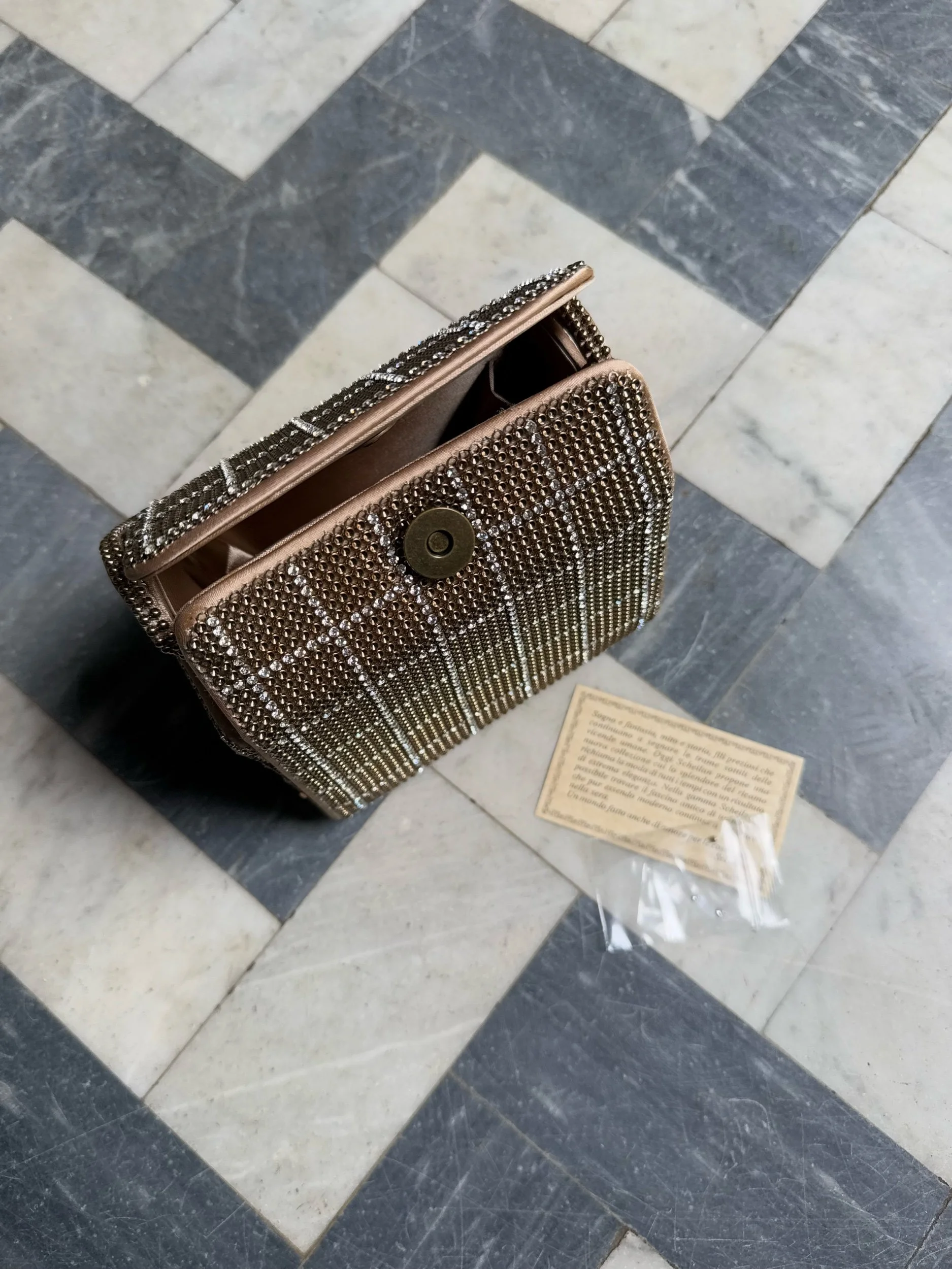 ⭑ Extra information: Scheilan is an exclusive bag brand from Florence, internationally recognized for their elegant jewelry and evening bags. Since the 1960s, they have been a leading player in the industry, manufacturing bags both under their own name and as a subcontractor for other well-known designers. This example comes from a unique vintage batch that was left over when the brand ended production in 2025. A piece of fashion history - with classic Italian craftsmanship and timeless elegance.